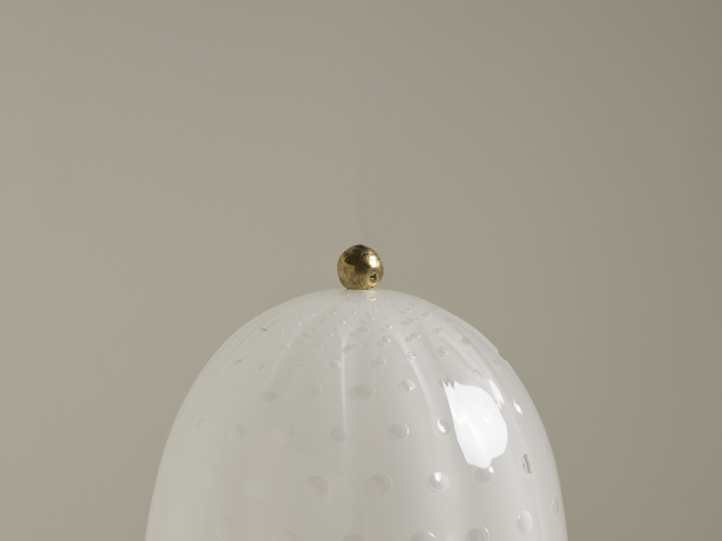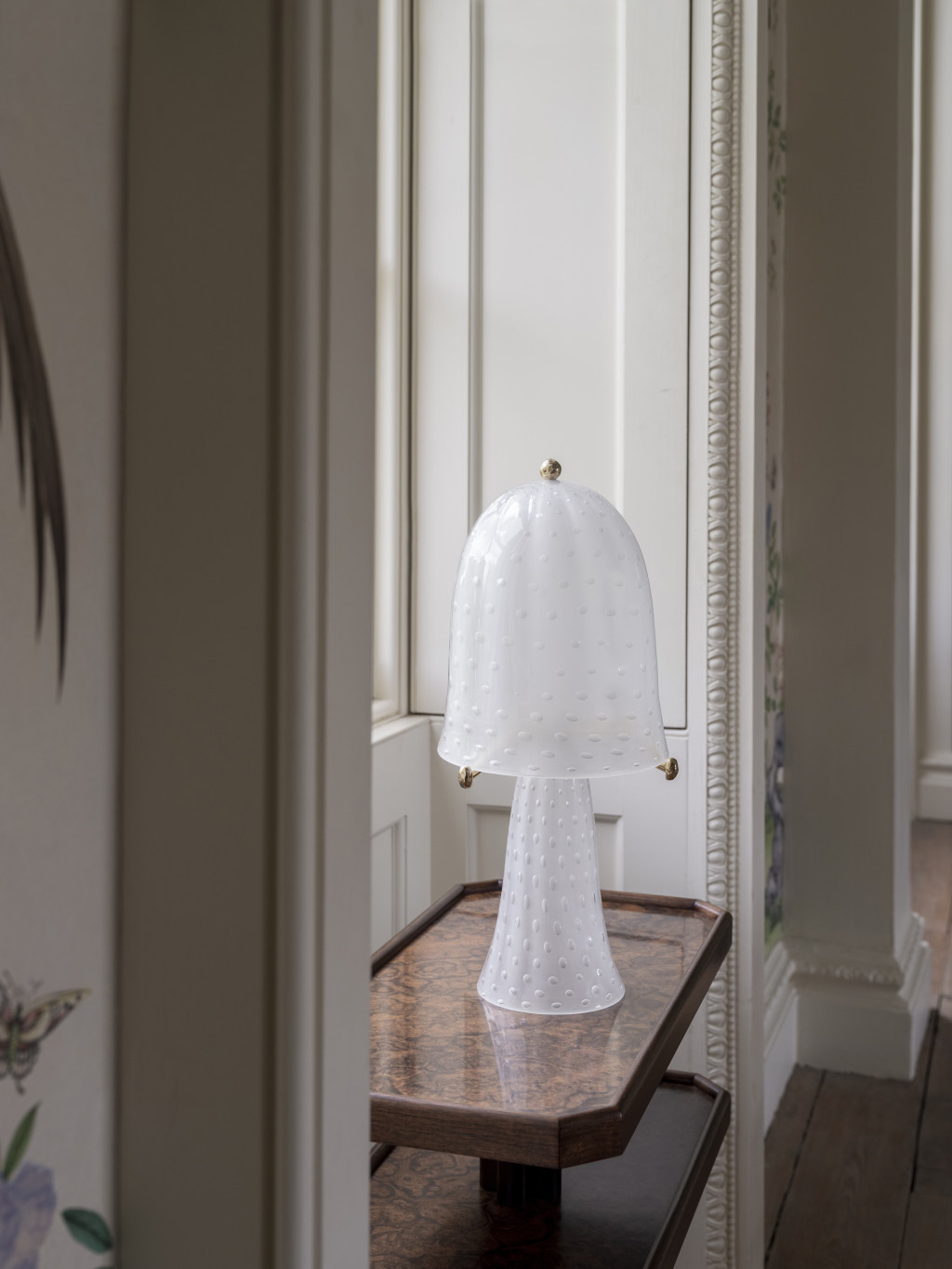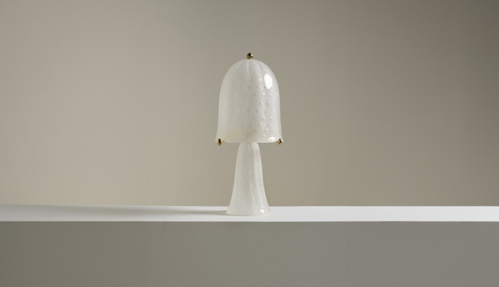 HAND-BLOWN TWO-TIER TABLE LIGHT MADE IN TRADITIONAL BULLICANTE GLASS, WITH CAST BRASS FINIALS.