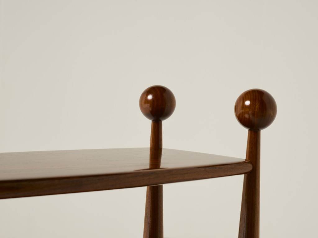 EUROPEAN WALNUT SIDE TABLE FINISHED IN FRENCH POLISH.