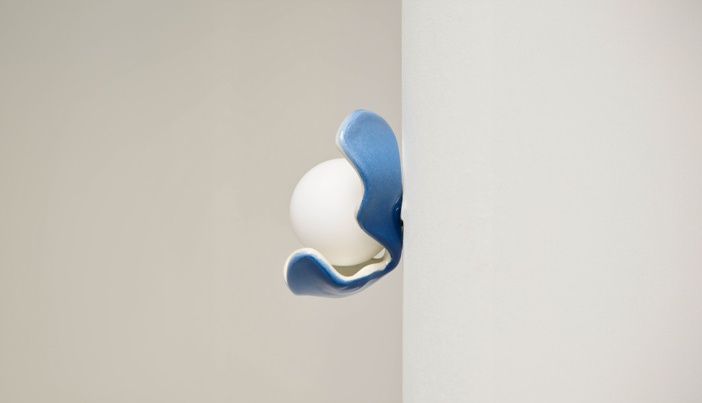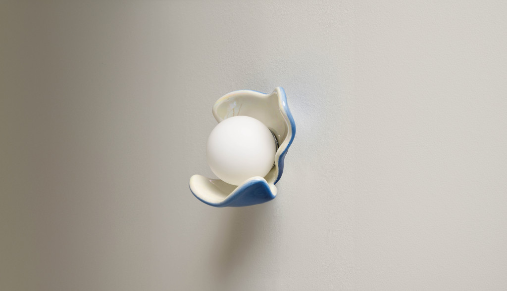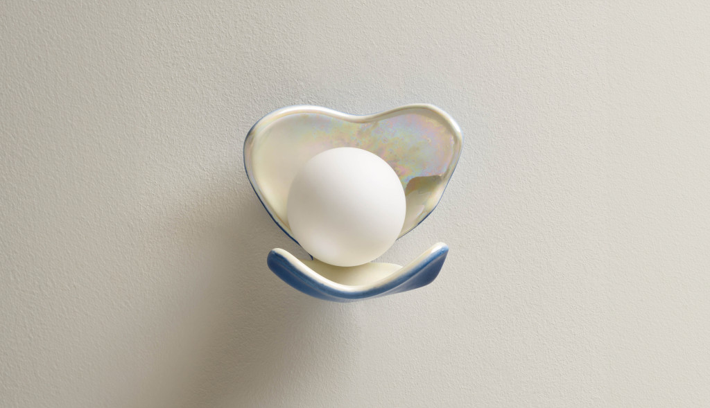 CERAMIC GLAZED WALL LIGHT SHELL WITH GLASS PEARL LIGHT.