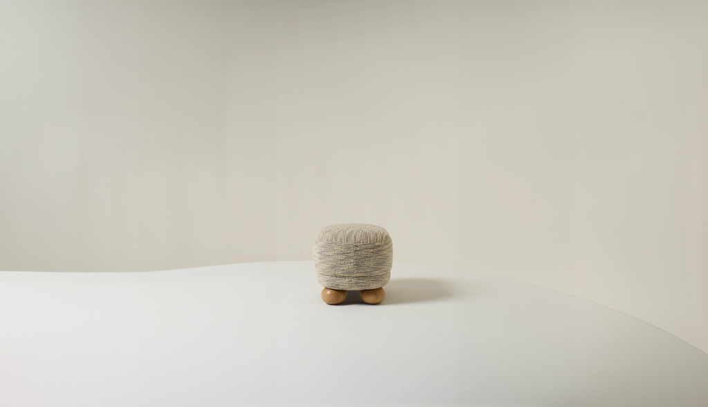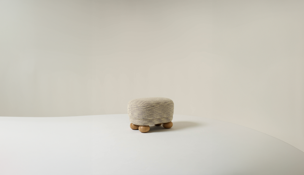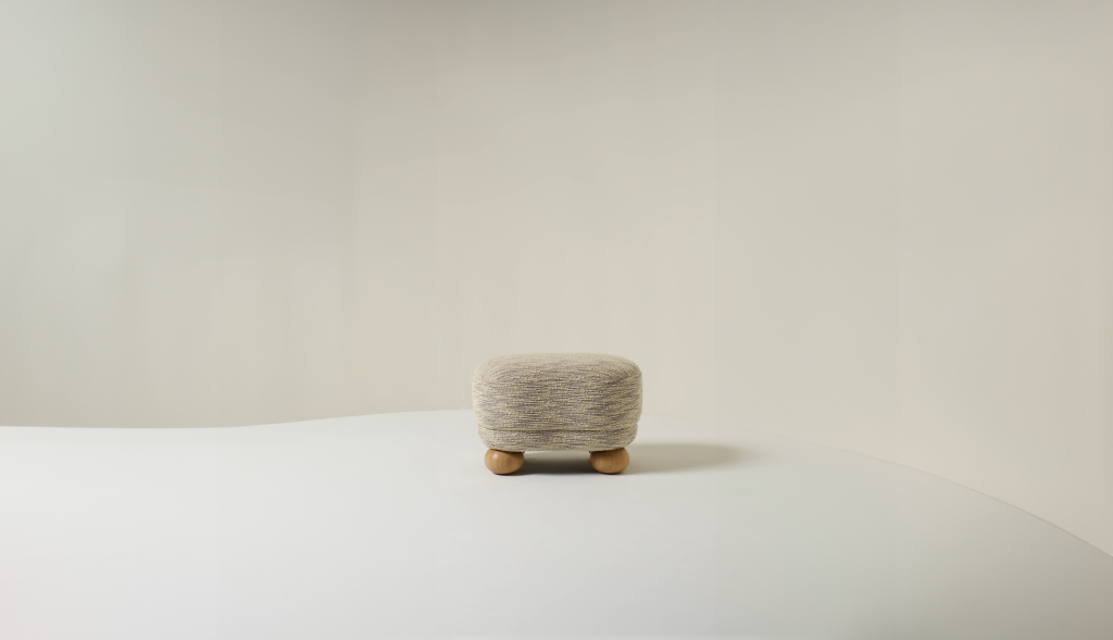 UPHOLSTERED OTTOMAN WITH EUROPEAN OAK FEET.