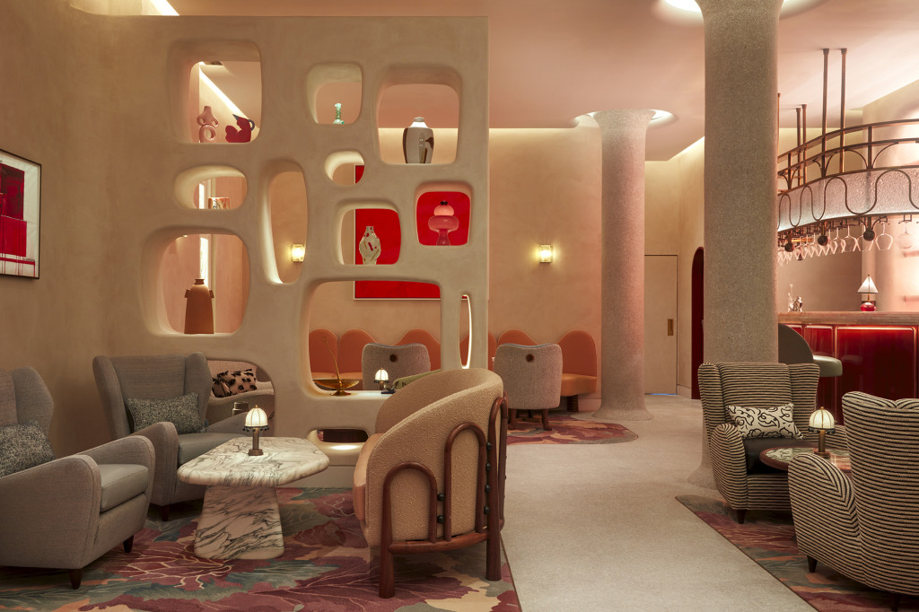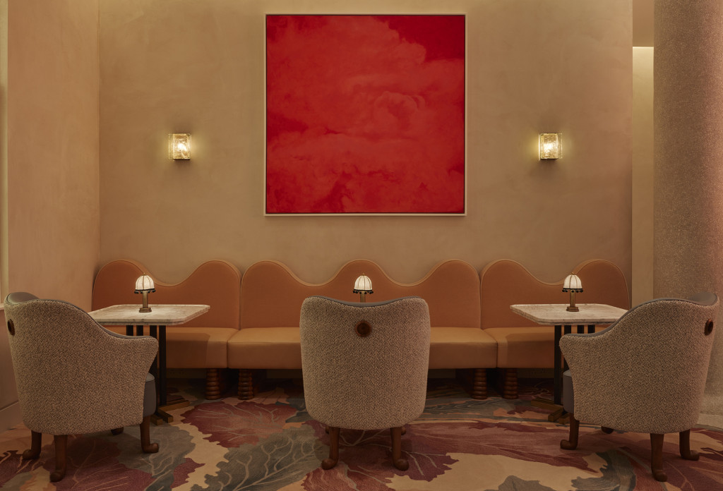 Red Room is a speakeasy hidden within The Connaught Hotel. The space takes inspiration from a series of Louise Bourgeois pieces collected by the client. Letting the artworks lead, we imagined the space to feel like the guest was sitting in the living room of an art collector. The furniture, a blend of studio originals and mid-century finds, is eclectic and relaxed.