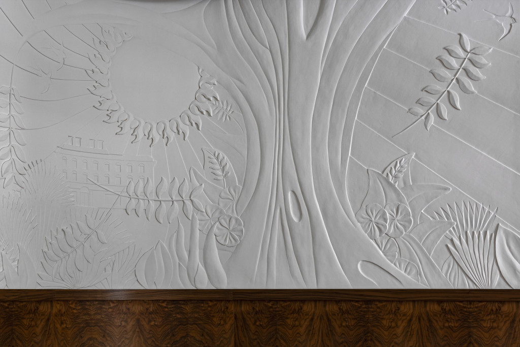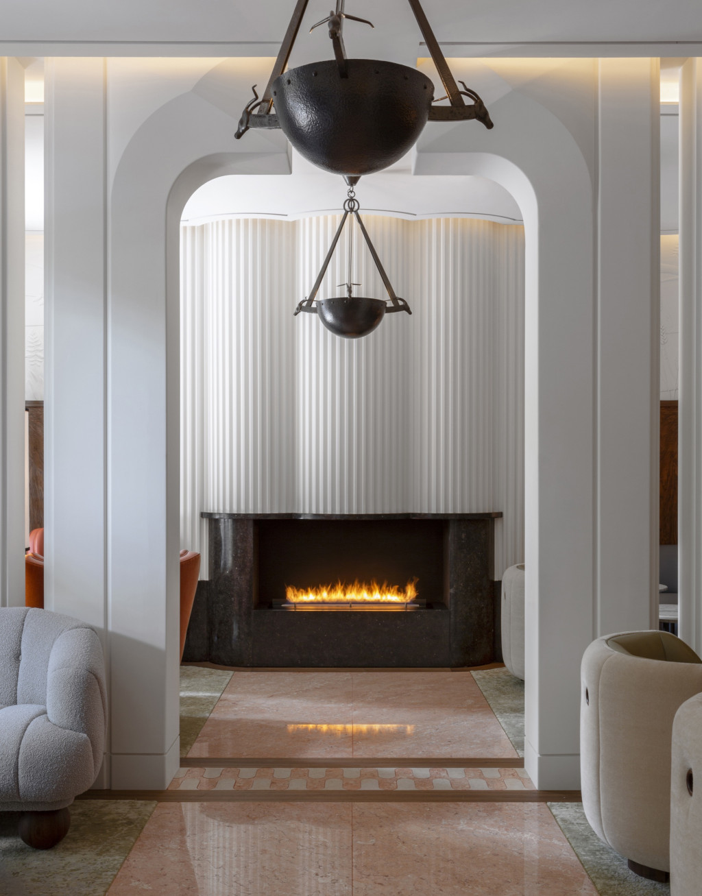 The Snug has been designed for more secluded occasions, set away from the main bar and seating up to nine guests. It features a spectacular mural, painted by New York-based artist TM Davy. The bar opens out onto an intimate terrace of only four tables, overlooking the neighbouring St Paul’s Church. Every element of The Berkeley Bar & Terrace has been designed by the studio and were realised by fine craftspeople, from the plasterwork frieze, bespoke lighting, custom furniture to the unique totem pole.